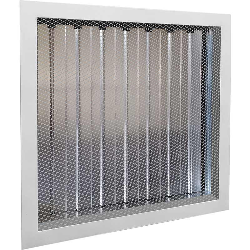 Сетчатые решетки с клапаном расхода воздуха СВР-Р используются в приточно-вытяжной вентиляции, различных системах воздуховодов, кондиционирования воздуха и предназначены для монтажа в воздуховоды или строительные проемы в помещениях различного типа и назначения. Решетки СВР-Р изготовлены из алюминиевого профиля в виде рамки и сетчатой вставки из оцинкованной стали. По умолчанию устанавливается просечно-вытяжная сетка 18х9 мм, по запросу возможно изготовление решеток с сеткой 10х10 мм.